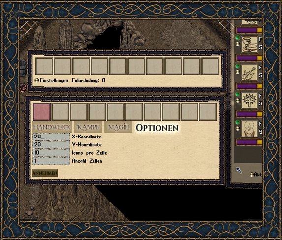 - Aktionsleiste – Verwaltung der Schnellzauber